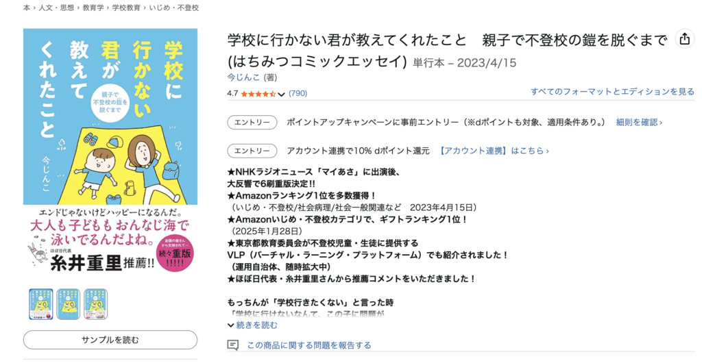 コミックエッセイ『学校に行かない君が教えてくれたこと 親子で不登校の鎧を脱ぐまで (はちみつコミックエッセイ)』に登場しました