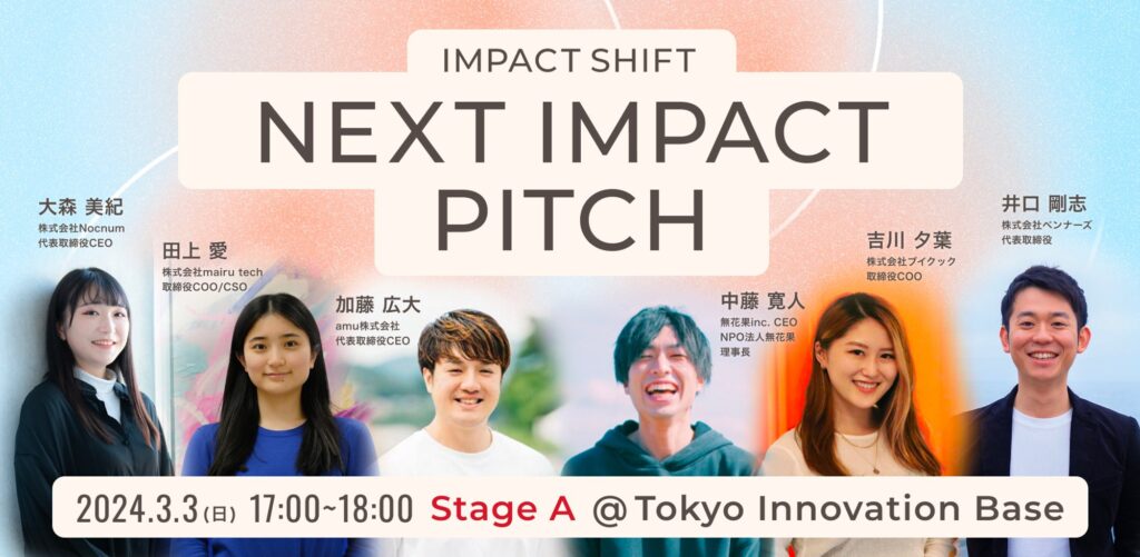 2024年3月3日にTokyo Innovation Baseで開催された、650名を超える参加者が集まるイベント「IMPACT SHIFT」にて、代表の中藤が登壇をしました。「10年後の社会に必要とされる社会インフラとなりうる法人」として無花果グループは選定いただき、U30中四国代...